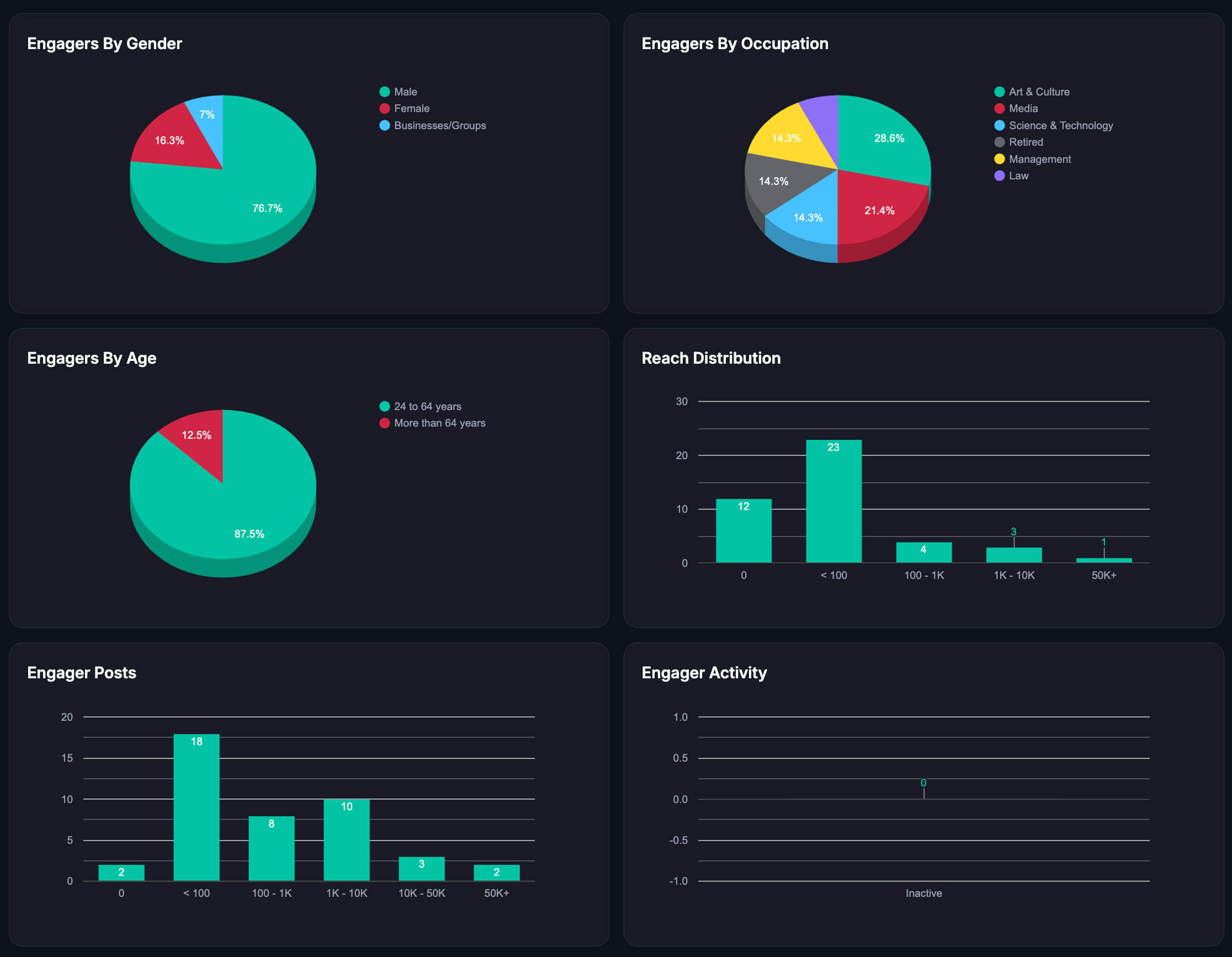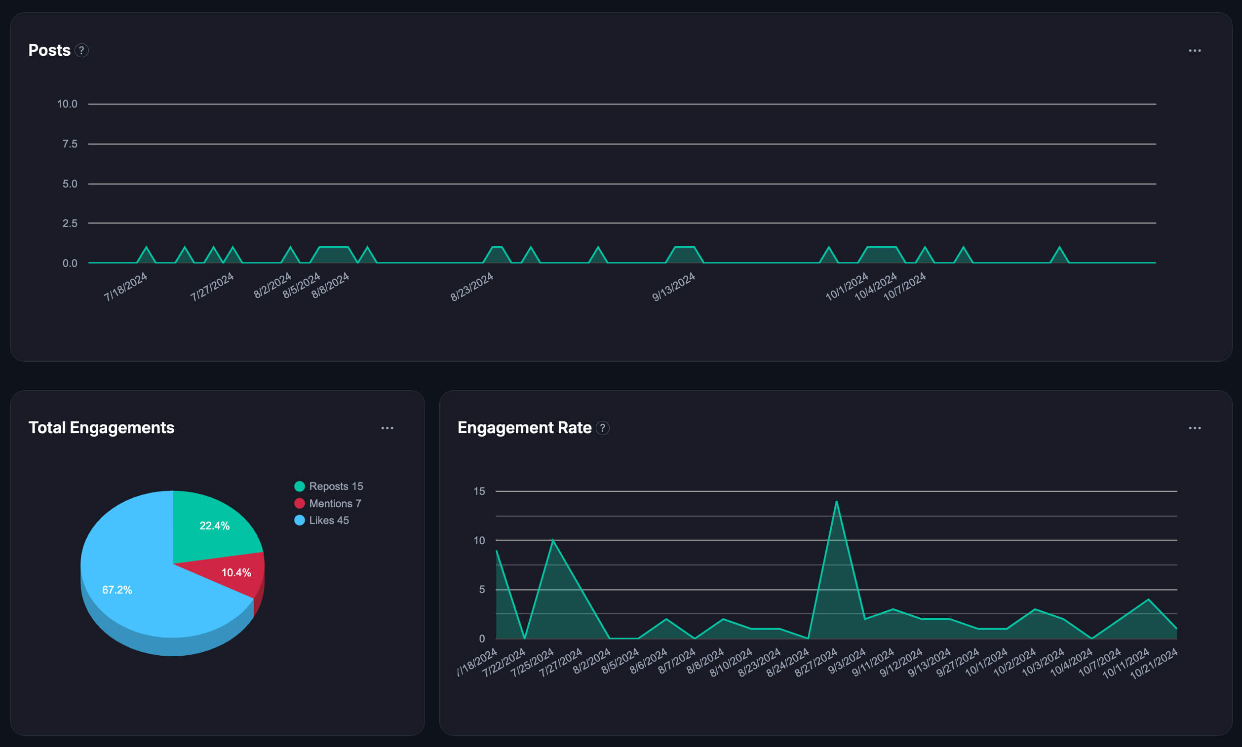 يمكنك تتبع أداء المنشورات واتجاهات التفاعل، ونمو المتابعين بمرور الوقت، وتضييق نطاق النتائج حسب نوع المحتوى والنطاق الزمني.