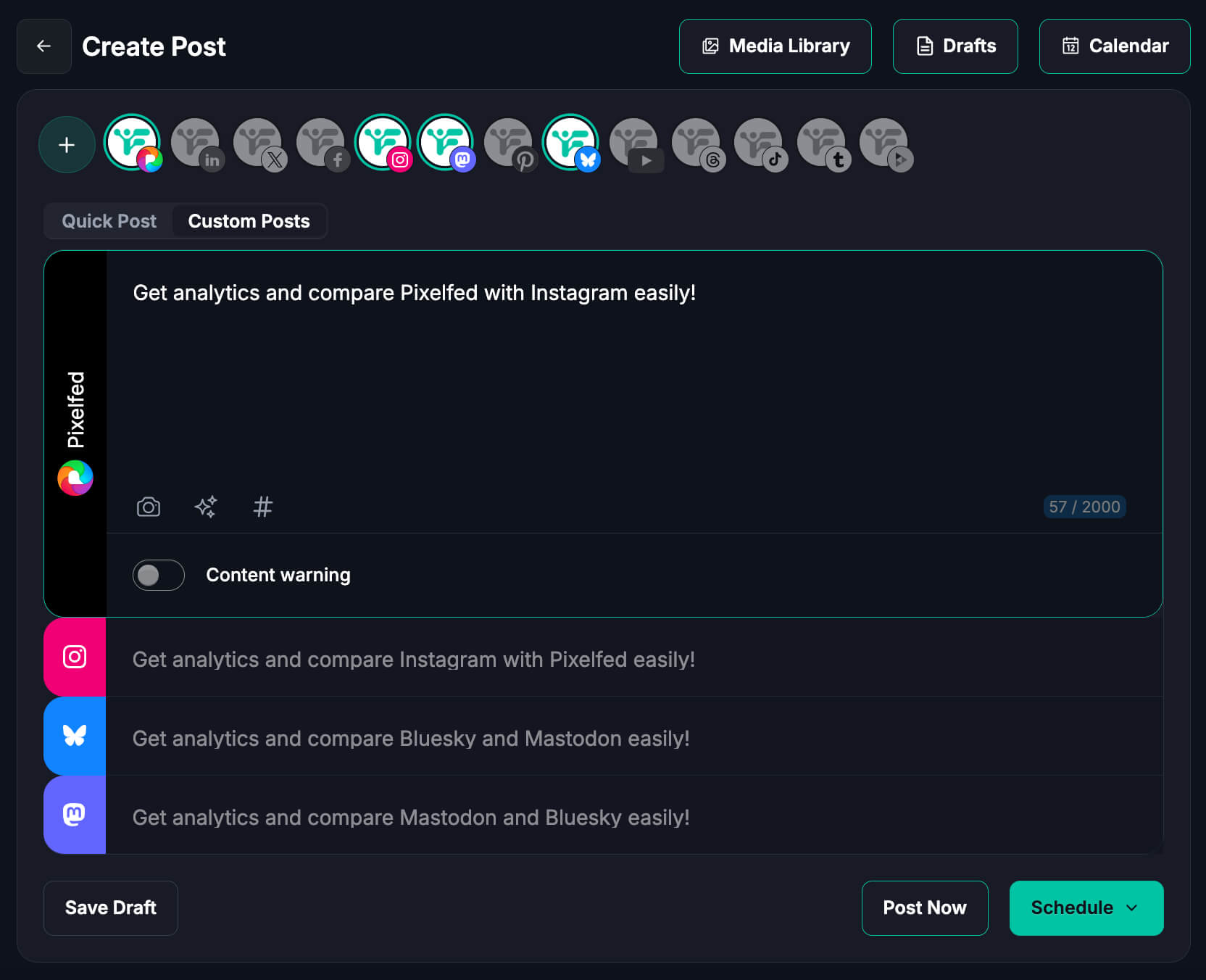 وفّر الوقت، وأتمت عمليات النشر، وجدول منشورات بكسلفد باستخدام أدوات نشر قوية لتنمية مجتمعك عبر منصات متعددة