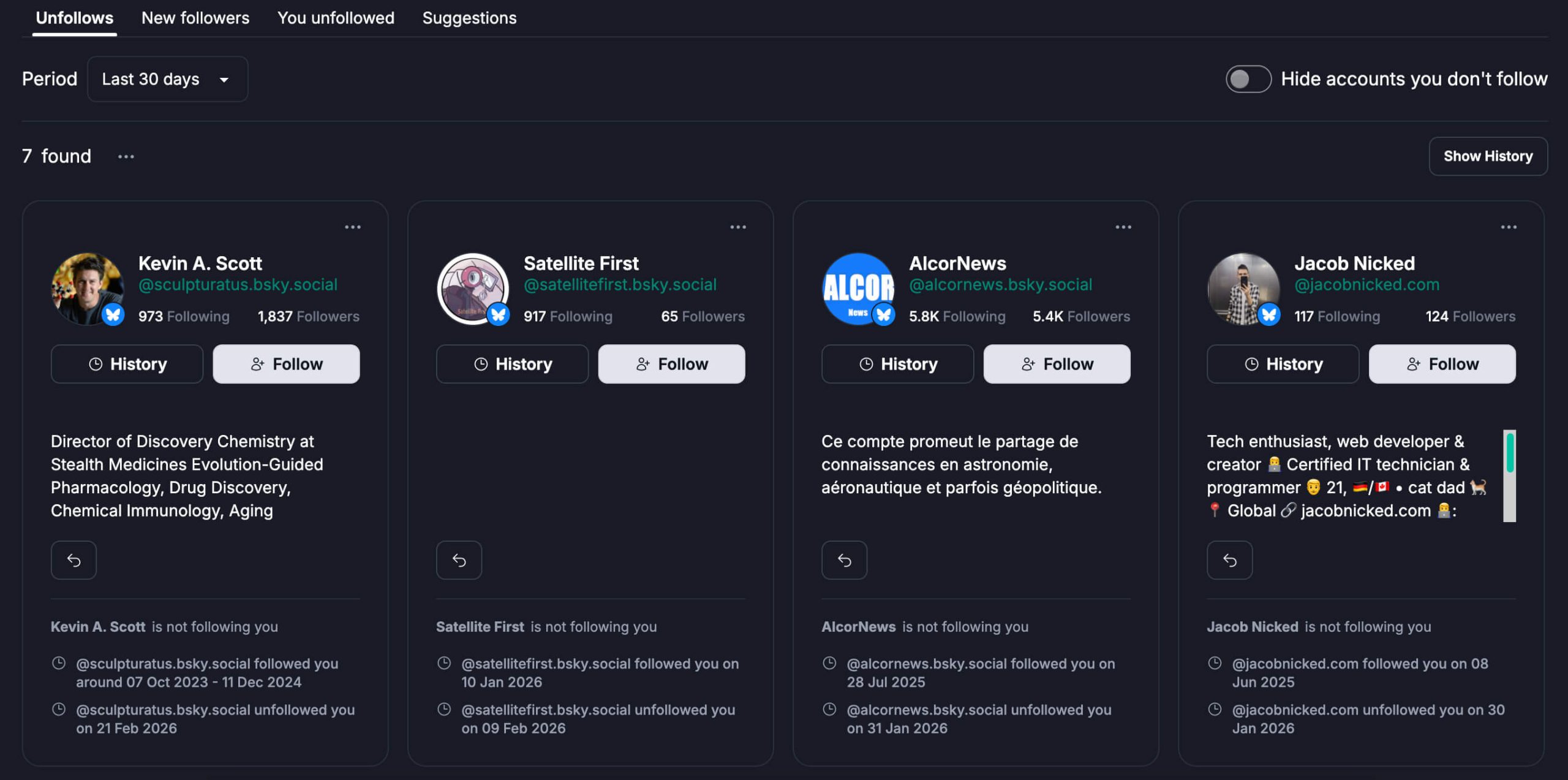 You be the judge, but we’ve spend years building our follower tracking tools and now they’re available for Bluesky.