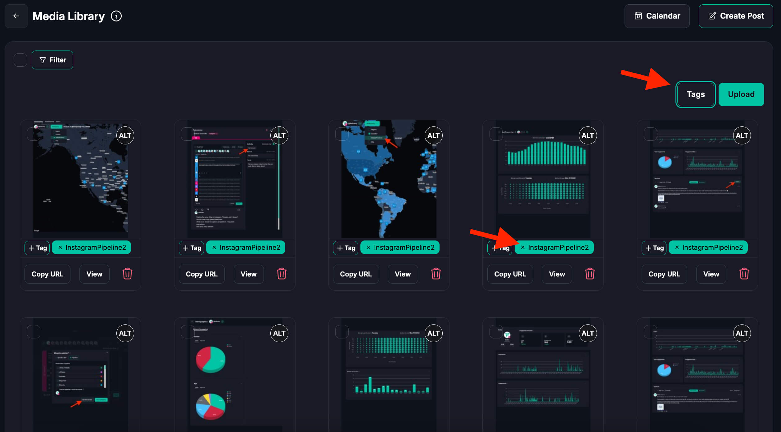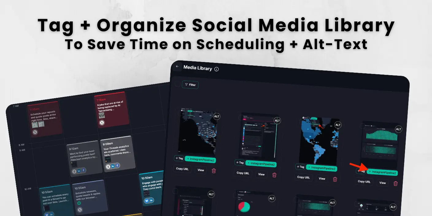 A practical social media content library includes reusable media, clear tags, caption support, and post-ready metadata like alt text. It should help your team find assets fast, without searching across multiple tools. The best setup connects to your posting flow so assets move from library to schedule fast. That turns a file collection into a working system for recurring and bulk posts.