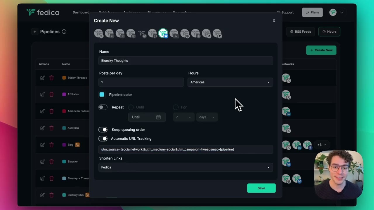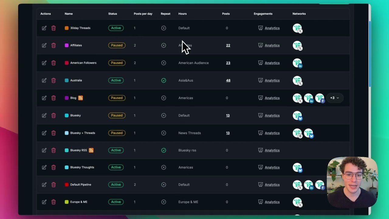 Create different pipelines for each category of posts, and define the number of posts per day for that pipeline. Don’t bore your followers by talking about the same thing all day, provide a mix of healthy topics and limit how many times you post about a given topic to keep your followers engaged.